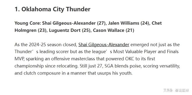 當今聯(lián)盟十大青年軍:雷霆力壓馬刺領跑,火箭湖人入圍前五